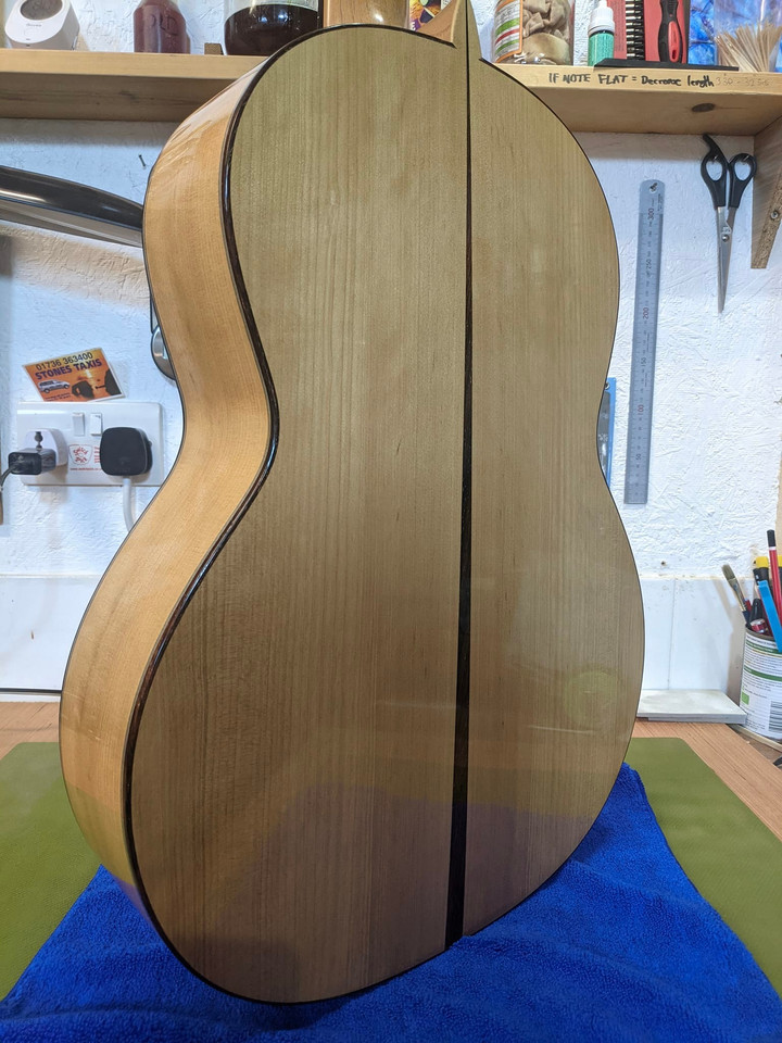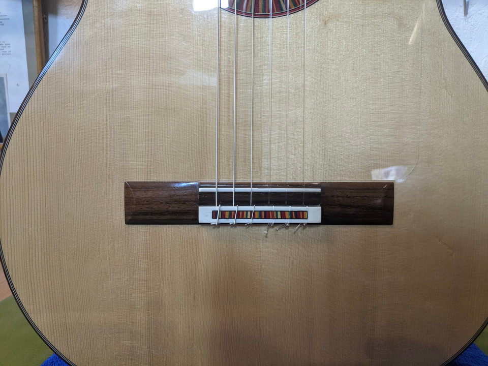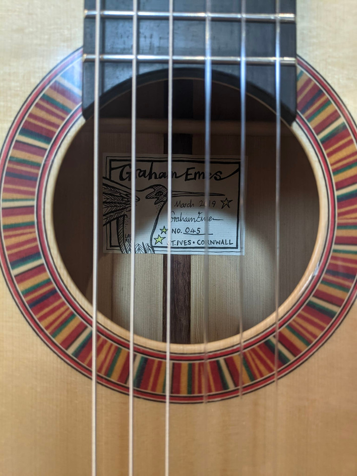 Originally built in March 2019 as a shop/demo Flamenco Blanca guitar no.045, this is made with a really wonderfully figured spruce top and beautiful cypress back and sides. The sound is dry and expressive with a hearty growl and great dynamic range. With a good low action, she plays very nicely and is a lot of fun.