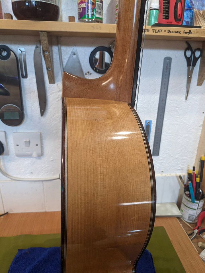 It's been great to have this guitar in the shop but I always like to move demo guitars on after a few years. There are some marks from being played but nothing really major or noticeable, unless you look closely, and the aged French polish looks very nice now too. A rare opportunity to grab a great guitar at this special price. NB I can offer insured shipping across the UK at a cost of £25.